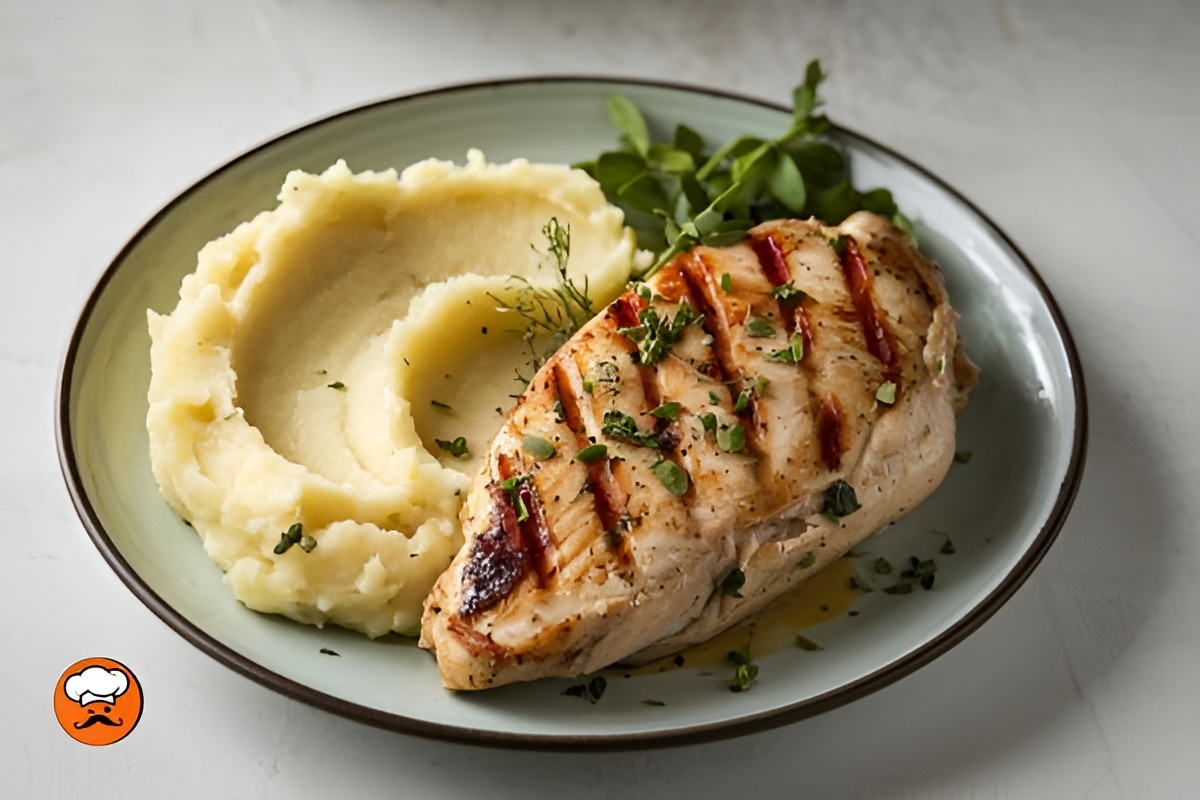 pechuga de pollo a la parrilla, pollo con puré de papas, pollo a la plancha receta, pechuga pollo saludable, pollo con puré fácil